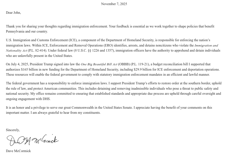 Realize that it is hard to have form letters that address every constituent letter. But this response was way off tangent from the concerns I raised about wasteful advertising and scary surveillance purchases by an agency (DHS/ICE) that appears unfettered by the law and Congress.