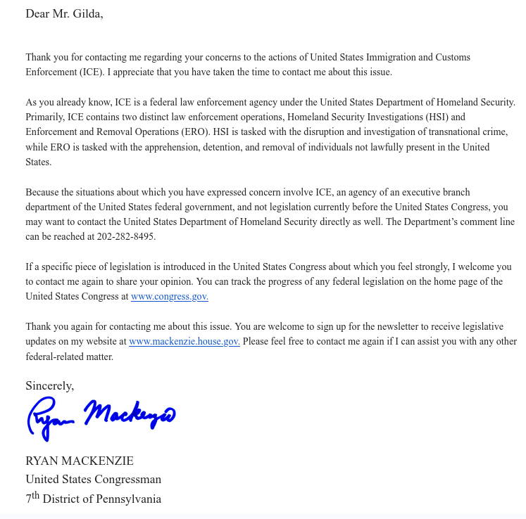 Dear Representative -