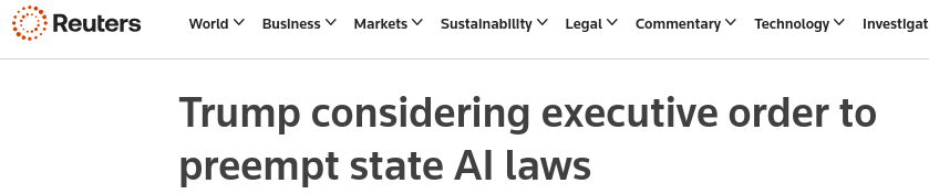 We can expect cries of China and National defense. The Federal Government is fully capable of making AI an industrial and defense priority without limiting States' rights.