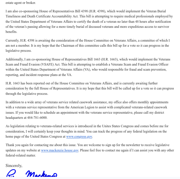 Your response was very long. Hope your passion for veterans continues and also hope that you will take immediate action if cuts in personnel hurt care.